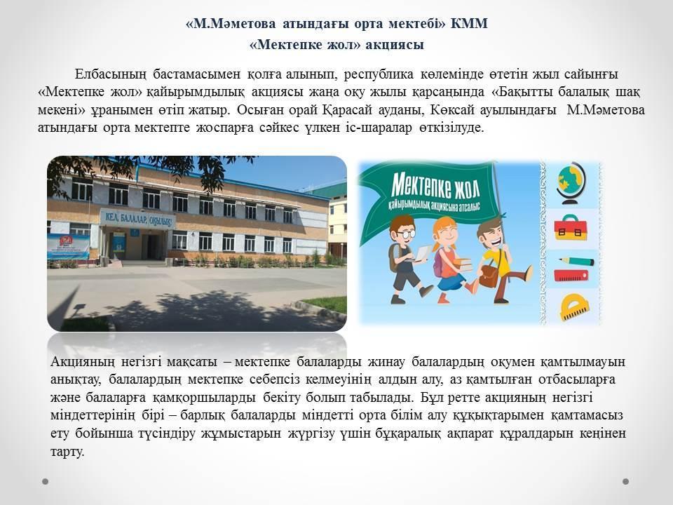 "Мектепке жол" акциясы » М.Маметова атындағы орта мектеп