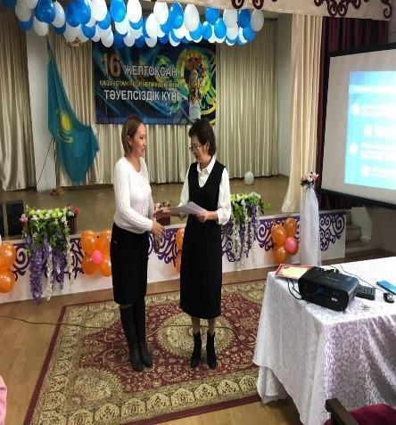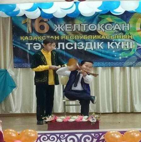 Мектебімізде 2021 жылы 16-желтоқсан Тәуелсіздік күніне орай «Тәуелсіздік елімнің тірегі» атты мерекелік іс-шара өткізілді. Іс-шара барысында мектебіміздің талантты, өнерлі оқушылары өнер көрсетіп, ән, би, күй тартып, ұстаздарды тәнті етті. Мерекелік іс-шара барысында желтоқсанға қатысқан Маулимова Сұлушаш Иманкуловна, Пазылбеков Бақытжан ардагер ұстаздарымызға мектебіміздің кәсіподақ ұйымының атынан сыйлықтар және мадақтамамен марапатталды. Сонымен қатар 16- желтоқсан Тәуелсіздік күніне орай мектебімізге аянбай еңбек етіп жүрген ұстаздарымызға және тазалыққа жауап беріп жүрген апайларға мадақтама табысталды.