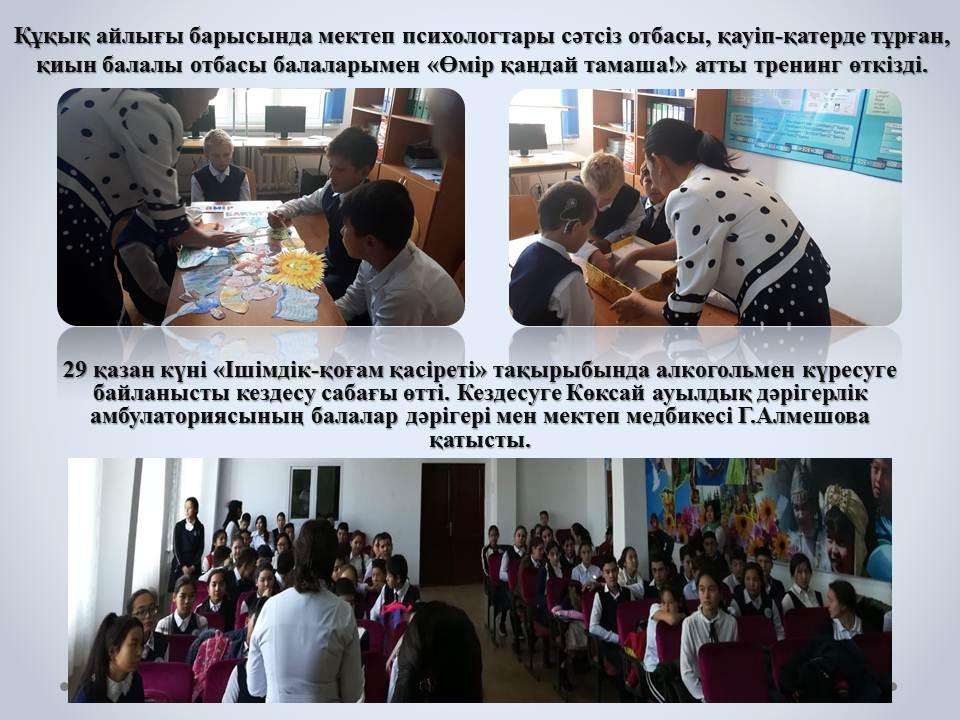 Құқық бұзушылықтың алдын алу жоспарына сәйкес бірнеше жұмыстар атқарылды » М.Маметова атындағы орта мектеп