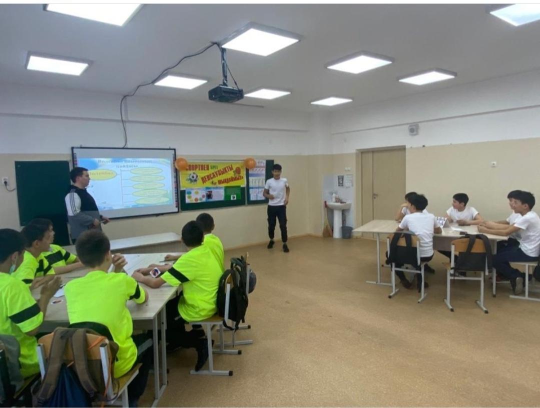 Дене шынықтыру пәнінің мұғалімі Есмақ Ділмұхамбет 21.02 күні 7 "Ә" сыныбымен "Ойындардағы командалық іс - әрекет және көшбасшылық" тақырыбында теориялық ашық сабағын өтті. Сабақ барысында Quizlet және Kahoot бағдарламаларымен балаларға тест түріндегі тапсырмаларды орындатып және сабаққа кері байланыс алынды. Сабақ барысында ойын түрлері, көсбасшылық терминін ашу мақсатында