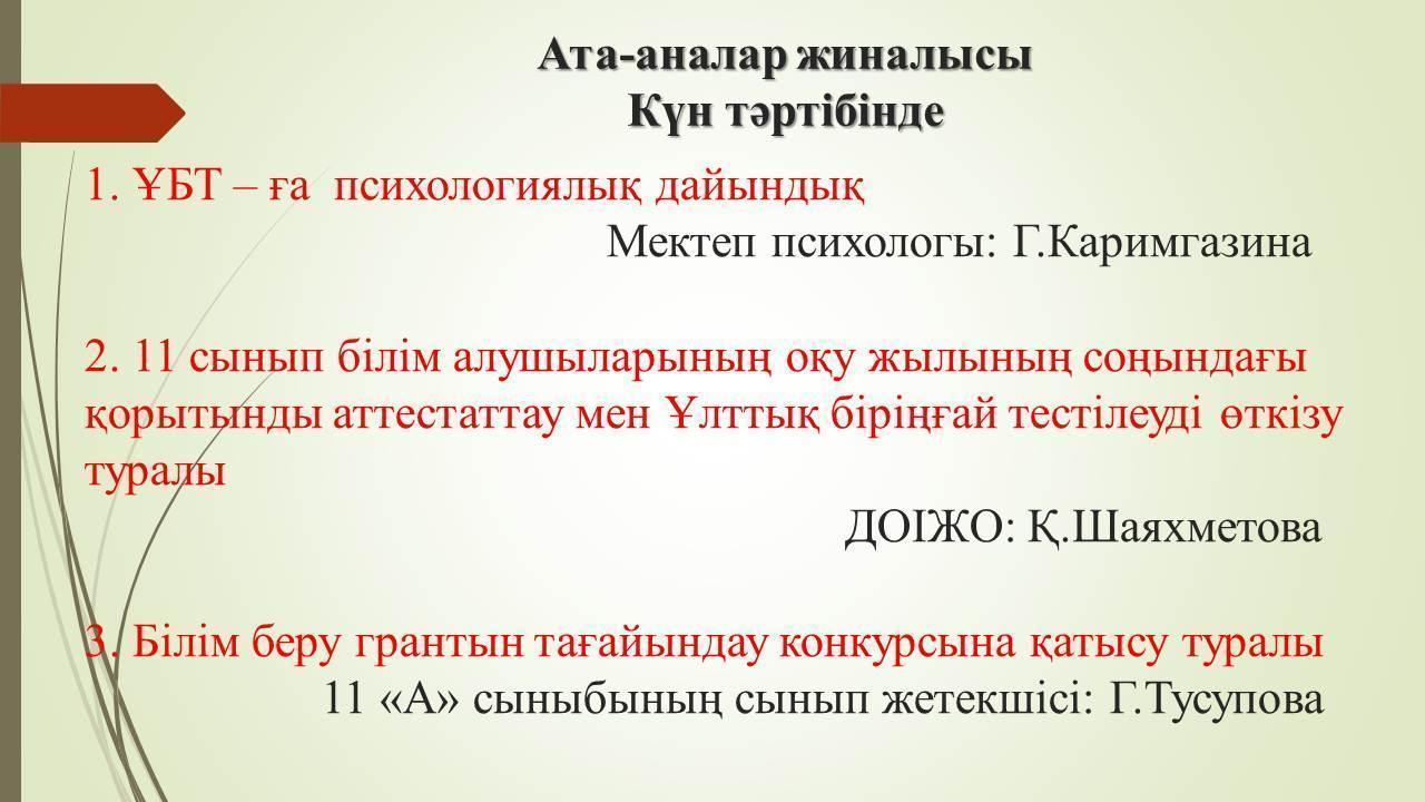 Желтоқсан айының басында 11 сынып оқушыларының ата-аналарына жиналыс өткізілді » М.Маметова атындағы орта мектеп