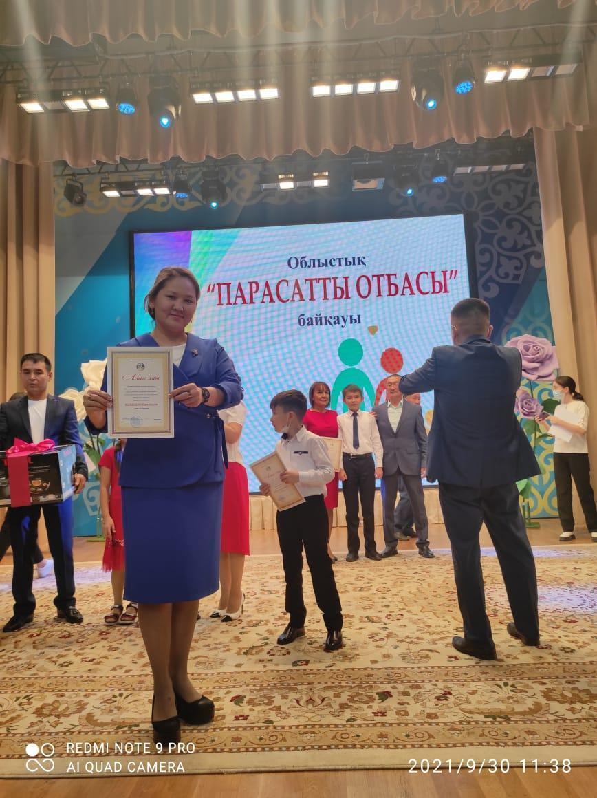 Облыстық "Парасатты отбасы " байқауының "Үлгілі отбасы" номинациясының иегері Қалыбаевтар отбасы. Алғыс хат пен құнды сыйлықпен марапатталды. » М.Маметова атындағы орта мектеп