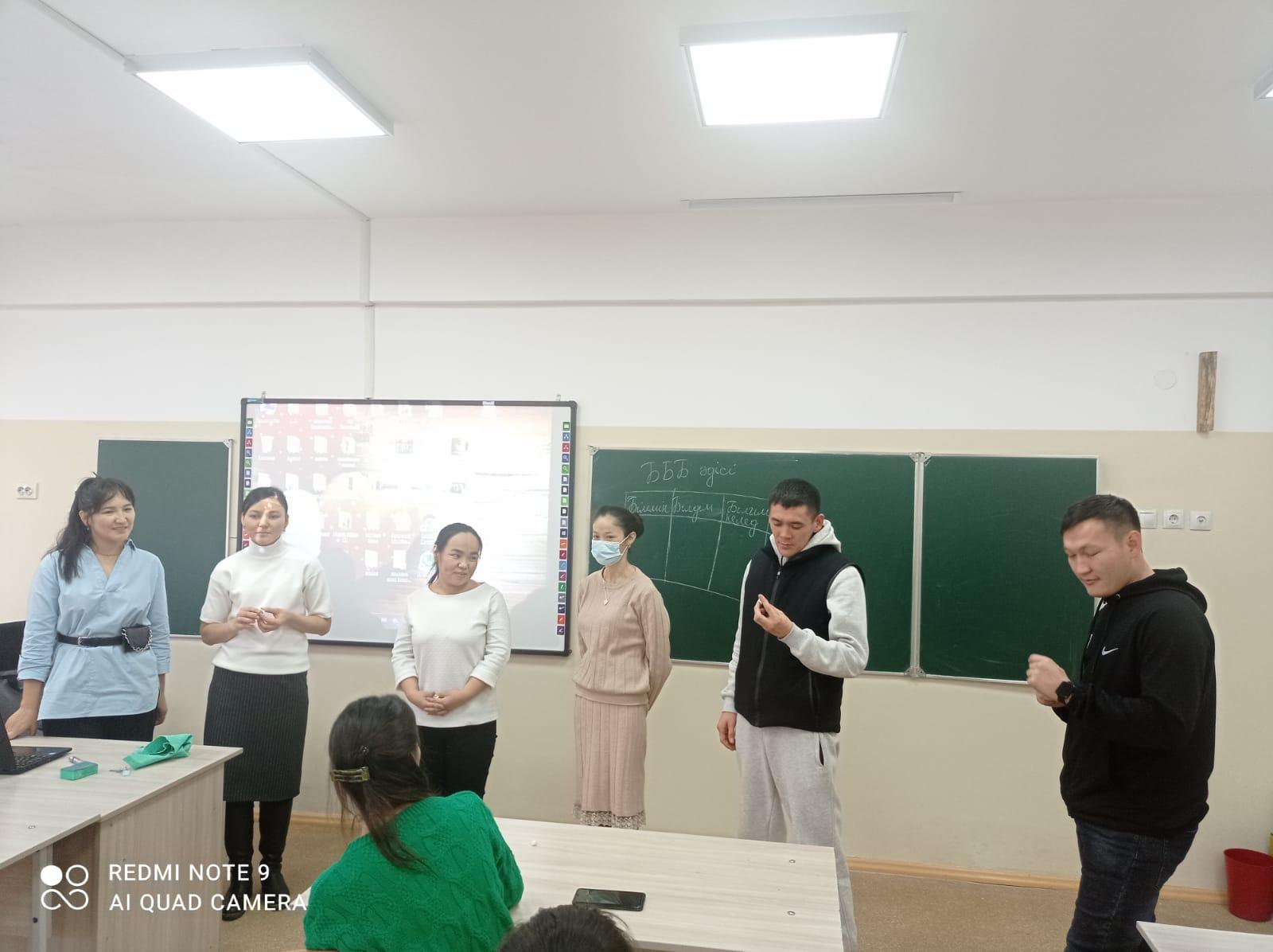 2021-2022 оқу жылының 4 желтоқсан күні жас мамандарға арнап директордың әдістемелік ісі жөніндегі орынбасары ұйымдастырған сенбілік мектепте физика пәнінің мұғалімі Қимаш Таңшолпанның «Әдіс -тәсілдер» және Жүнісақын Сандуғаштың «Тиімді әдіс-тәсілдер» тақырыбында дайындалған қысқаша баяндама мен шебер сыныпты жас мамандардармен бөлісті.